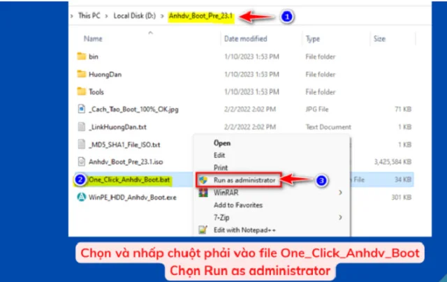 Sau khi đã thực hiện giải nén xong thì sẽ được các File như hình ảnh dưới đây. Người dùng chỉ cần nhấp chuột vào File và click vào “Run As administrator”.