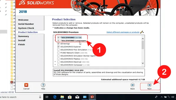 Bước 18: Chọn SOLIDWORKS và SOLIDWORKS Languages -> Nhấn chọn Next