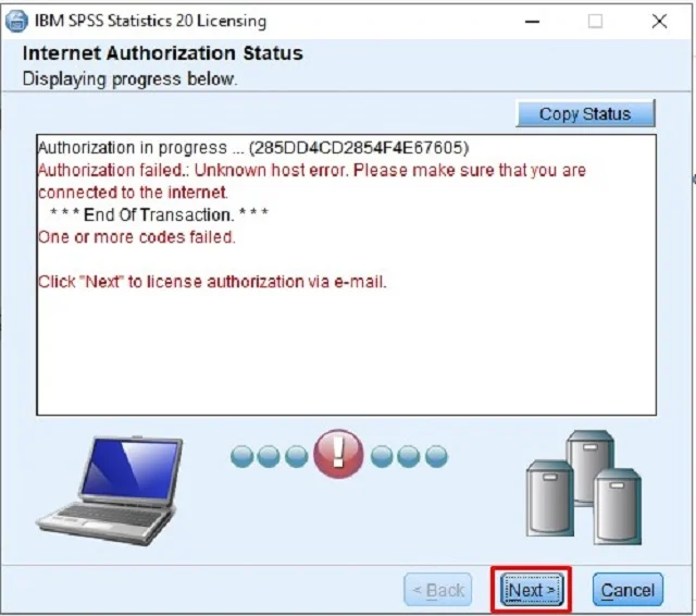 – Hệ thống tiếp tục yêu cầu người dùng cung cấp mã code kích hoạt SPSS full bản quyền. Bạn chỉ cần copy chính xác dòng mã “285DD4CD2854F4E67605” rồi paste vào mục yêu cầu, bấm Next.