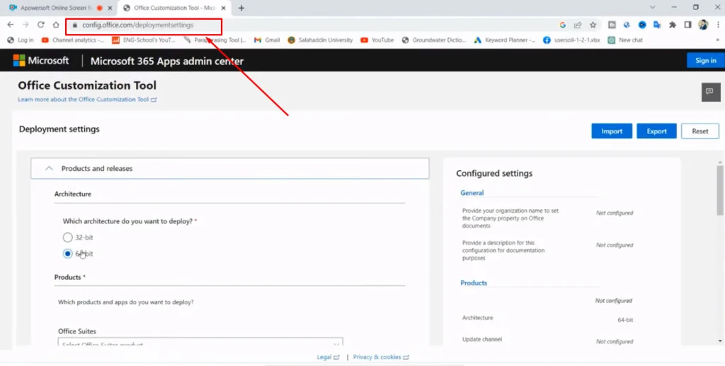 Bước 1: Để tải phiên bản dùng thử của Microsoft Office 2019, hãy truy cập URL config.office.com/deploymentsettings và chọn phiên bản bạn muốn tải xuống trên máy tính của bạn.